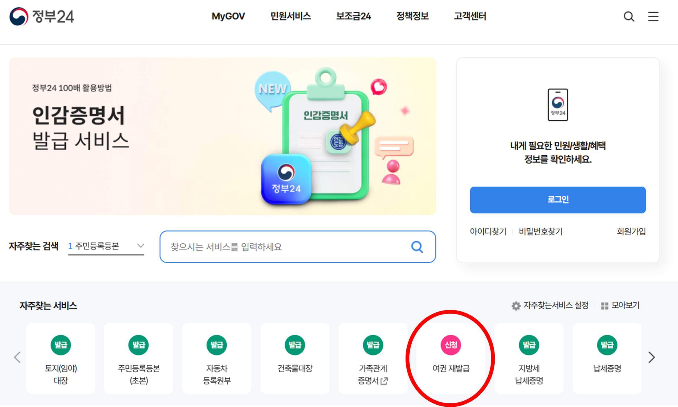 - 정부24에 접속하여 로그인합니다.